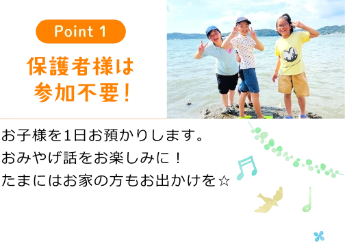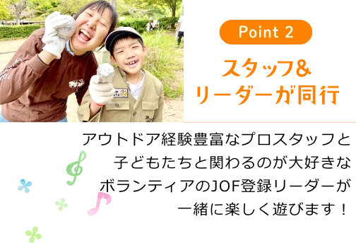 沢山のお友だちと素敵な思い出を創れるように、工夫を凝らしたプログラムを用意して、リーダーたちがしっかりとサポートします。初めてでも、おひとりでも安心してご参加ください。